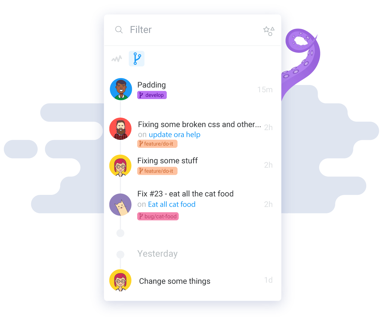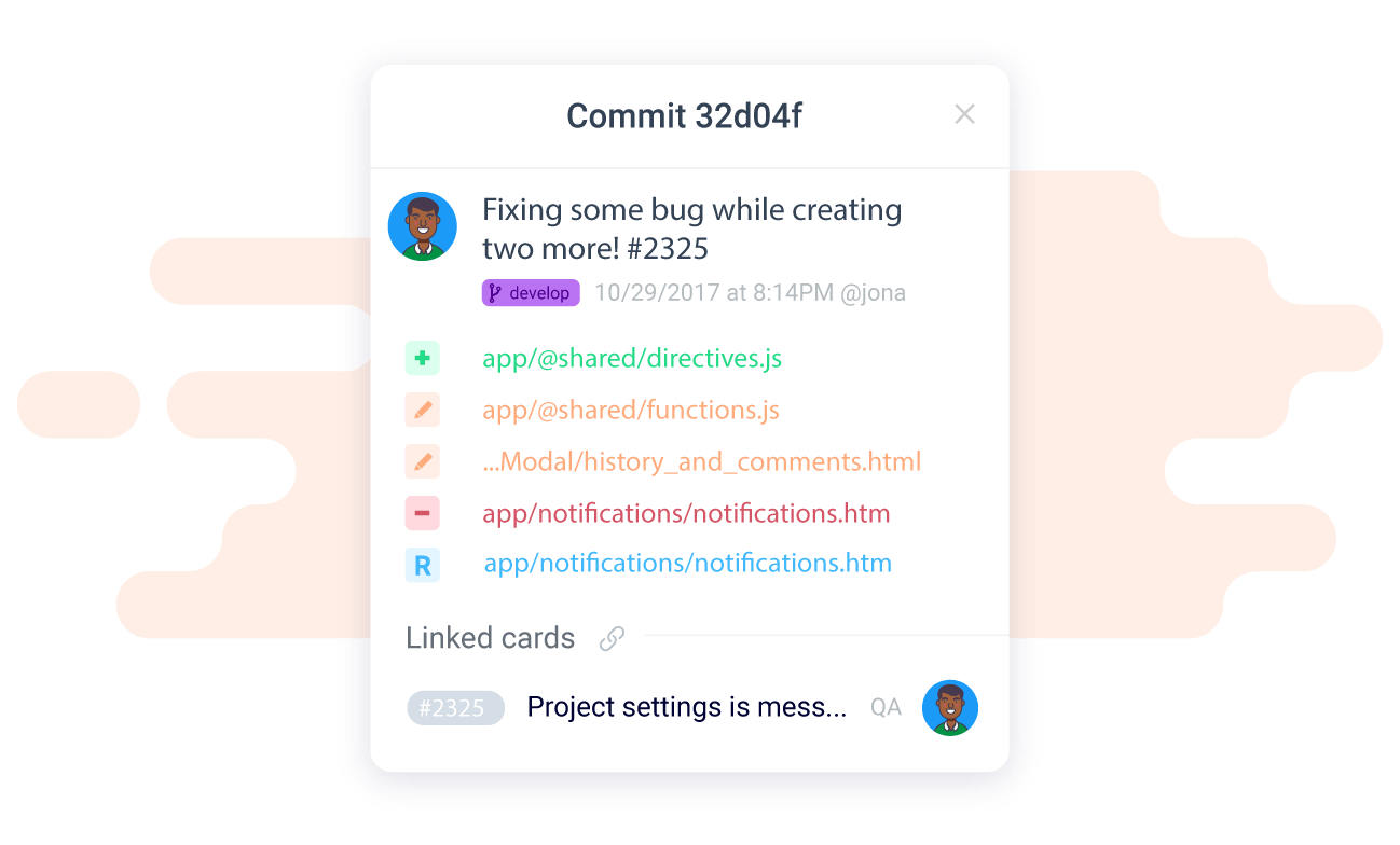 By clicking on any commit in Ora, no matter if it's in the activity or inside the task you will be able to see details about the changes. Added, removed, modified files and even a diff.