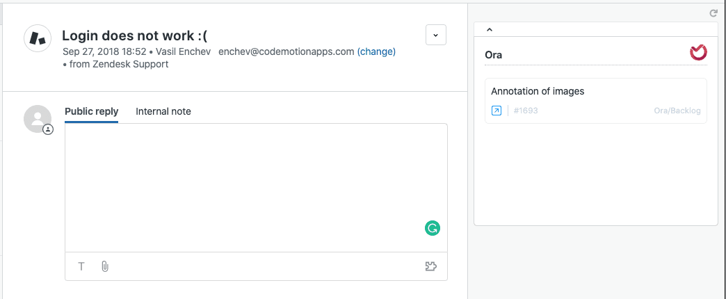Швидко шукайте тікет zendesk і прив'язуйте його до завдання, не виходячи з Ora.